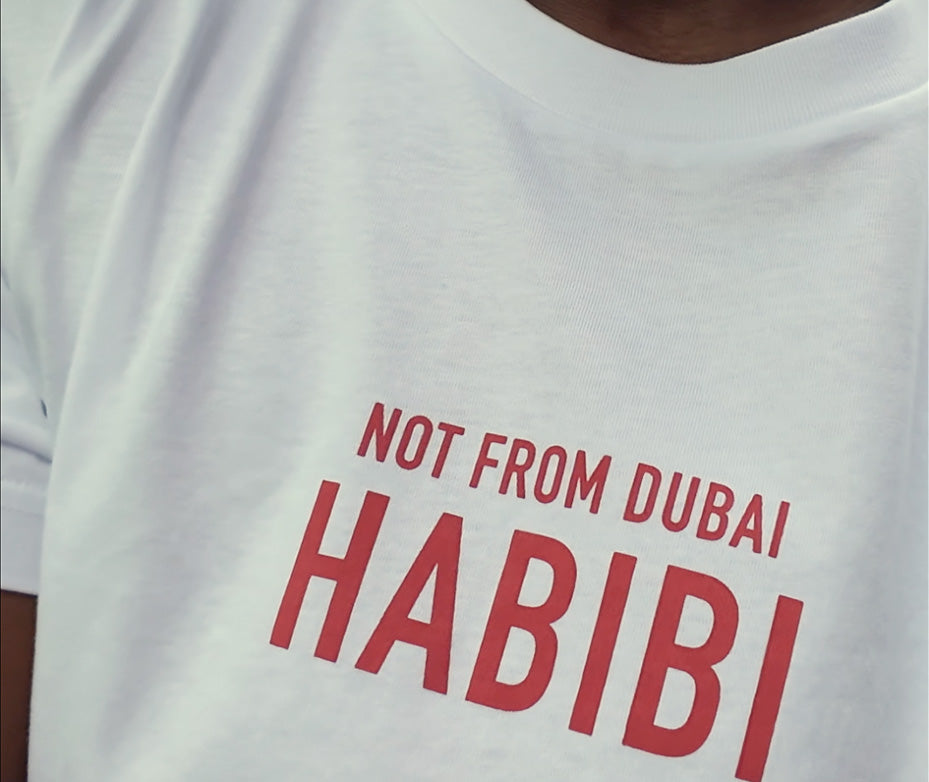 summer tee? The 'HABIBI' slogan t-shirts are made from soft combed organic cotton that gives a smooth feel on the skin.